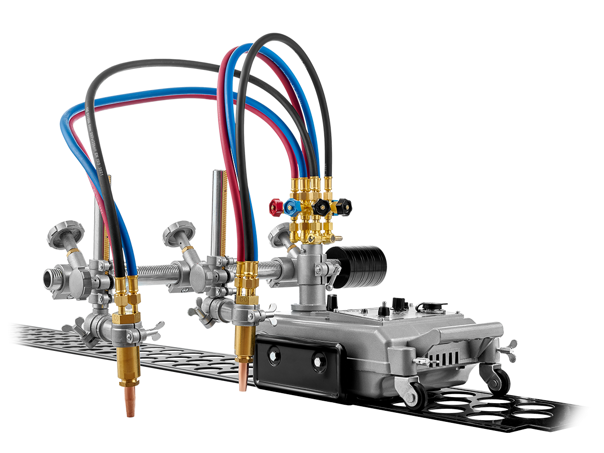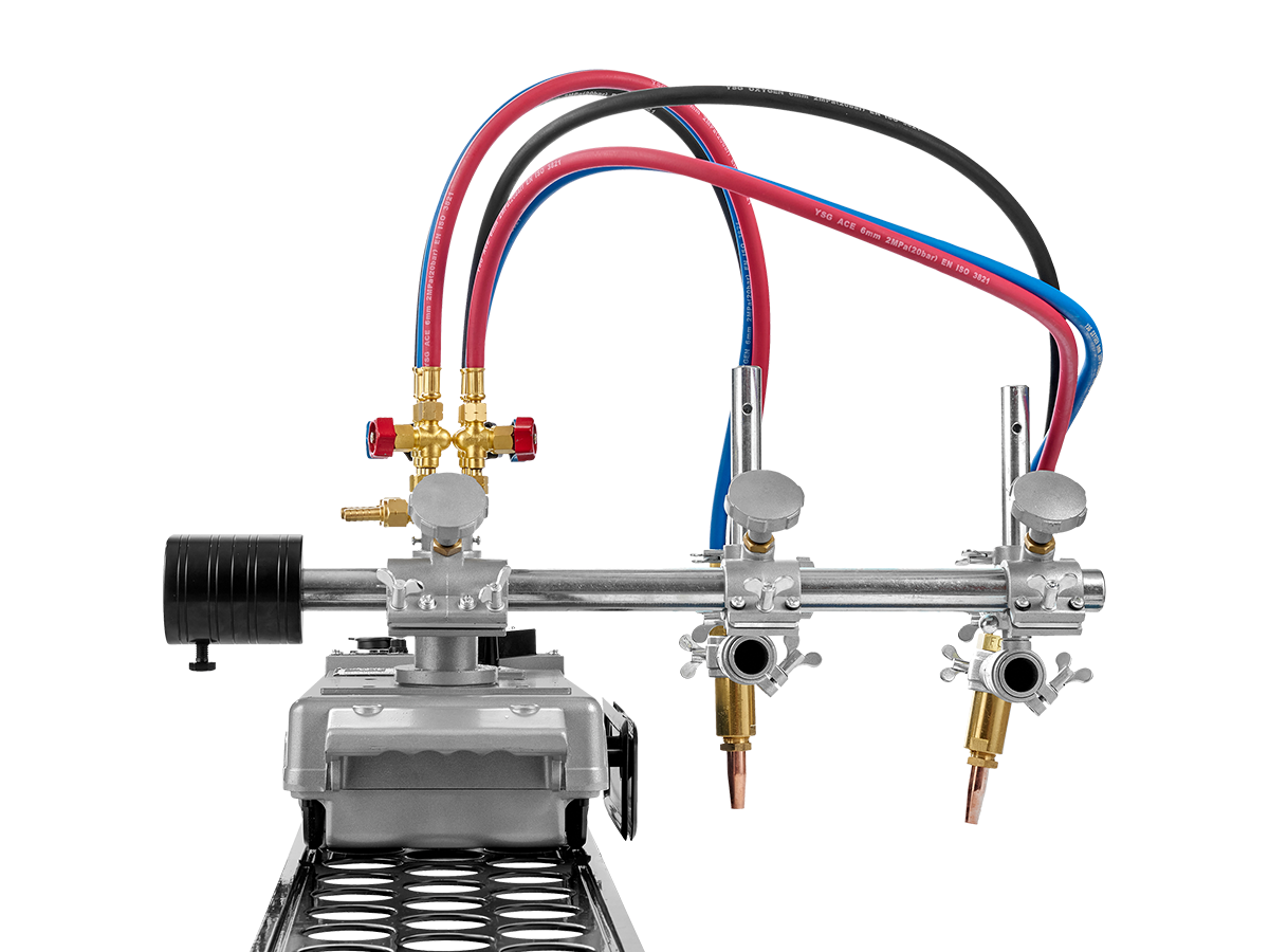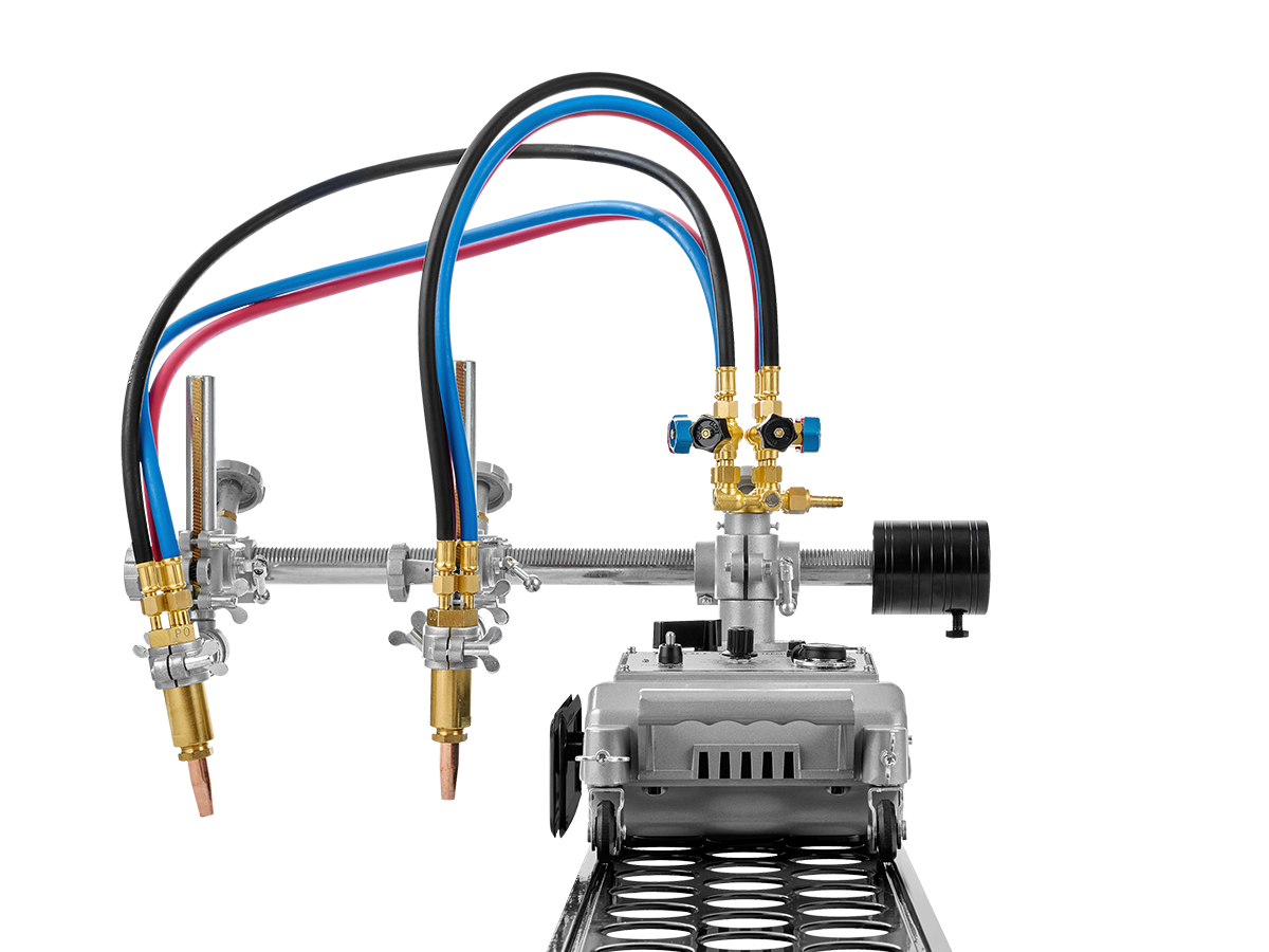 Резка выполняется двумя газокислородными резаками, установленными в держателях на самоходной тележке. Зажим крепления резаков для машин термической резки имеет реечный механизм, который позволяет перемещать резаки, регулировать их высоту установки над поверхностью металла, а также устанавливать угол наклона резаков в пределах ±45°. Положение резаков фиксируется винтами.
