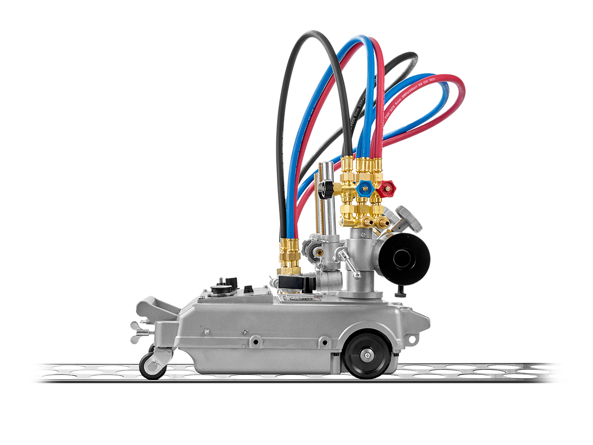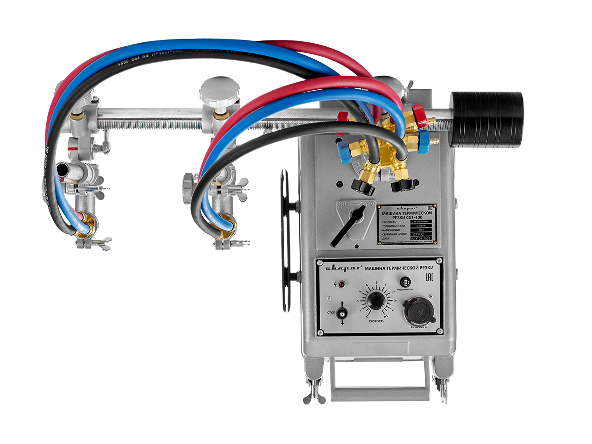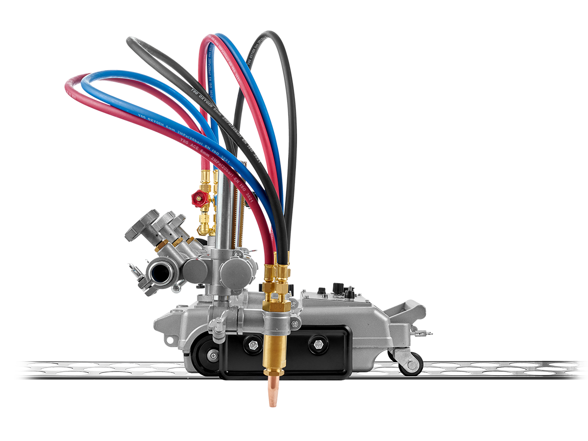 Резка выполняется двумя газокислородными резаками, установленными в держателях на самоходной тележке. Зажим крепления резаков для машин термической резки имеет реечный механизм, который позволяет перемещать резаки, регулировать их высоту установки над поверхностью металла, а также устанавливать угол наклона резаков в пределах ±45°. Положение резаков фиксируется винтами.