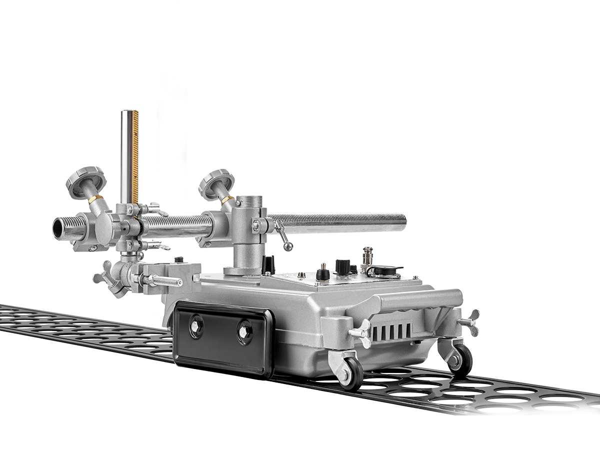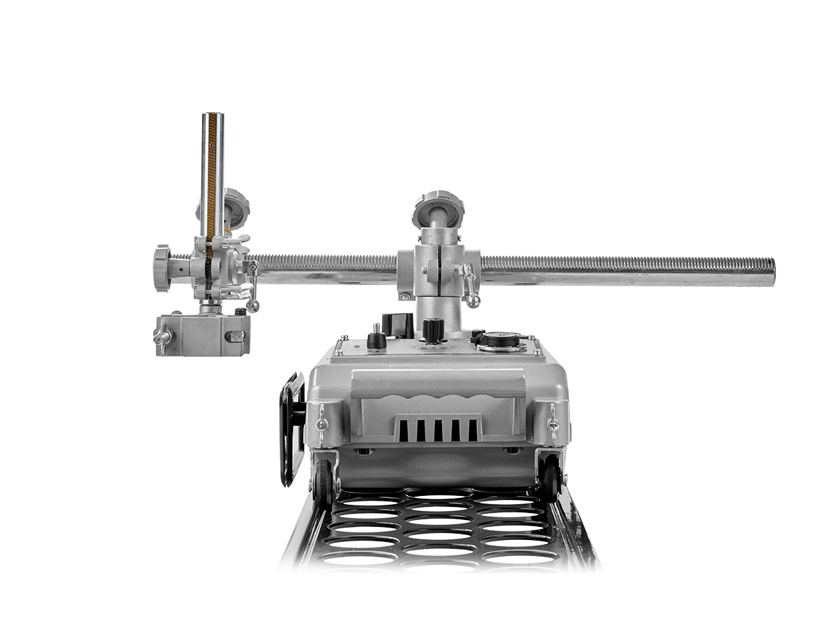Самоходная тележка перемещается вдоль линии реза по направляющему рельсу или при помощи циркульного устройства. Привод электрический– 220В