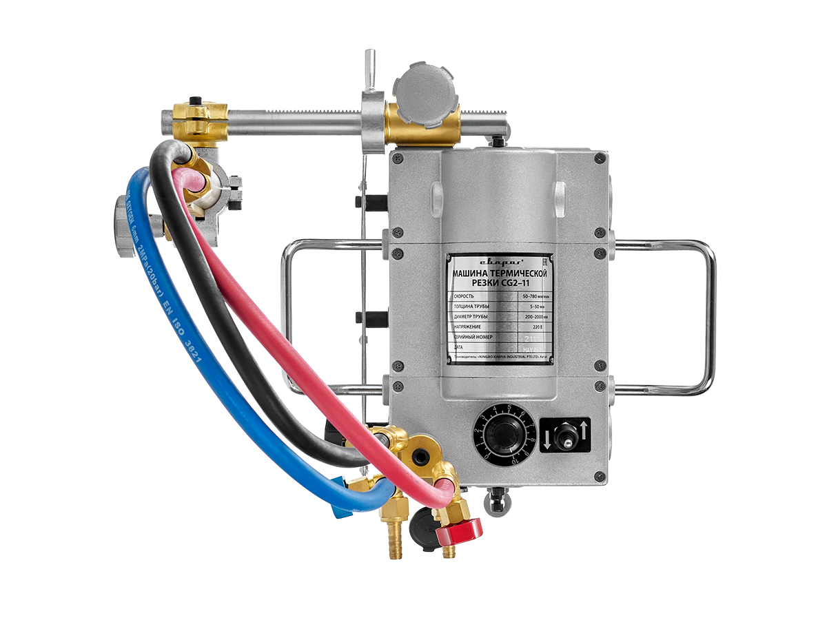 Резка выполняется резаком, который можно регулировать в разных плоскостях, устанавливать на необходимую высоту над поверхностью металла. Предусмотрена возможность регулировать угол наклона резака. CG2—11 производит рез снаружи, внутри или вдоль осевой линии трубы.