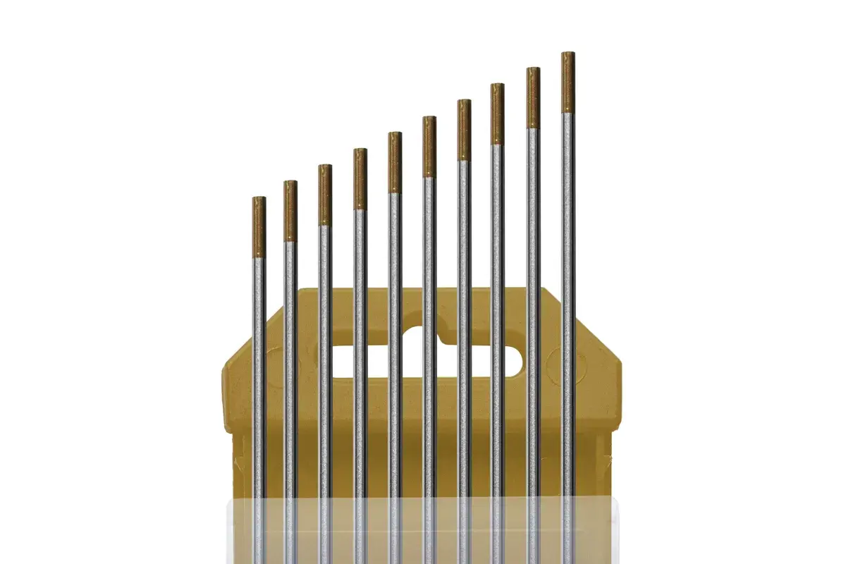 Электроды вольфрамовые WL-15-175, Ø 2,4 мм, цвет золотистый (цена указана за 1 электрод из сплава вольфрама с оксидом лантана имеют очень легкий первоначальный запуск дуги, низкую склонность к прожогам, устойчивую дугу и отличную характеристику повторного зажигания дуги.