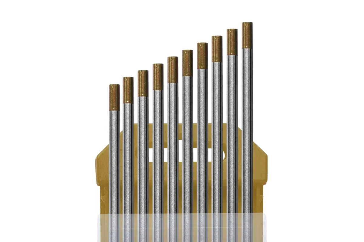 Электроды вольфрамовые WL-15, Ø 4,0 мм, цвет золотистый (цена указана за 1 электрод) из сплава вольфрама с оксидом лантана имеют очень легкий первоначальный запуск дуги, низкую склонность к прожогам, устойчивую дугу и отличную характеристику повторного зажигания дуги.