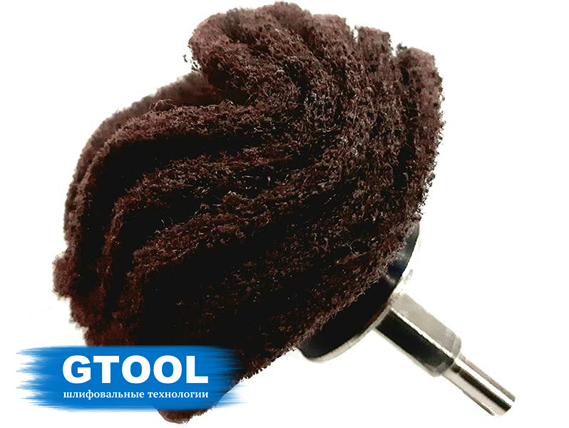 Наборная шлифовальная головка из лепестков трехмерного абразивного материала (скотч-брайт) предназначена для промежуточного шлифования в труднодоступных местах поверхностей из нержавеющей стали и цветных материалов.
