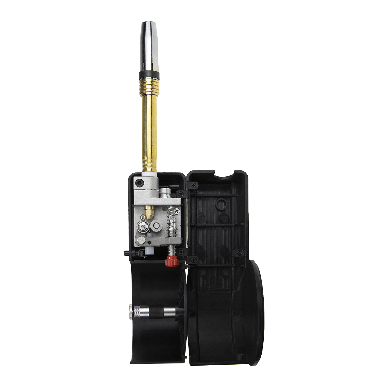 Сварочная горелка позволяет работать на удалении от аппарата, производить сварку в труднодоступных местах со сложным пространственным положением сварного шва. Благодаря конструктивным особенностям отсутствует эффект смятия сварочной проволоки в механизме подачи.