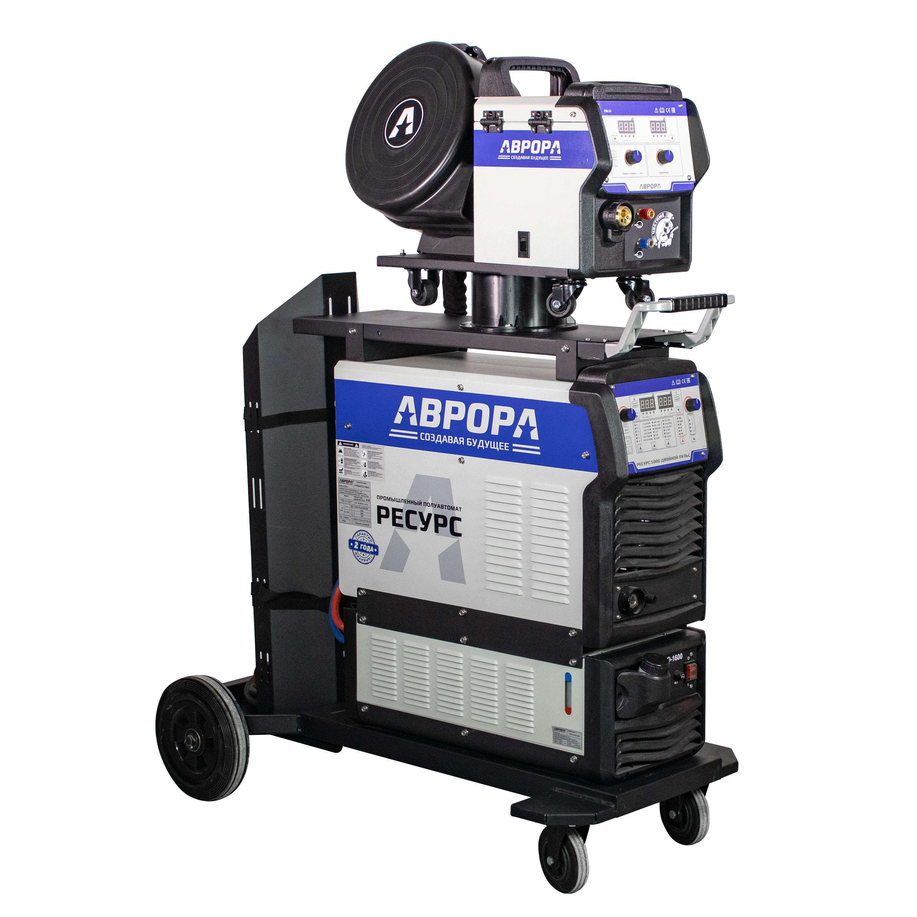 Индустриальный инверторный сварочный полуавтомат АВРОРА РЕСУРС 5000 ДВОЙНОЙ ПУЛЬС + подающий, тележка, водяное охл. + аттестат НАКС