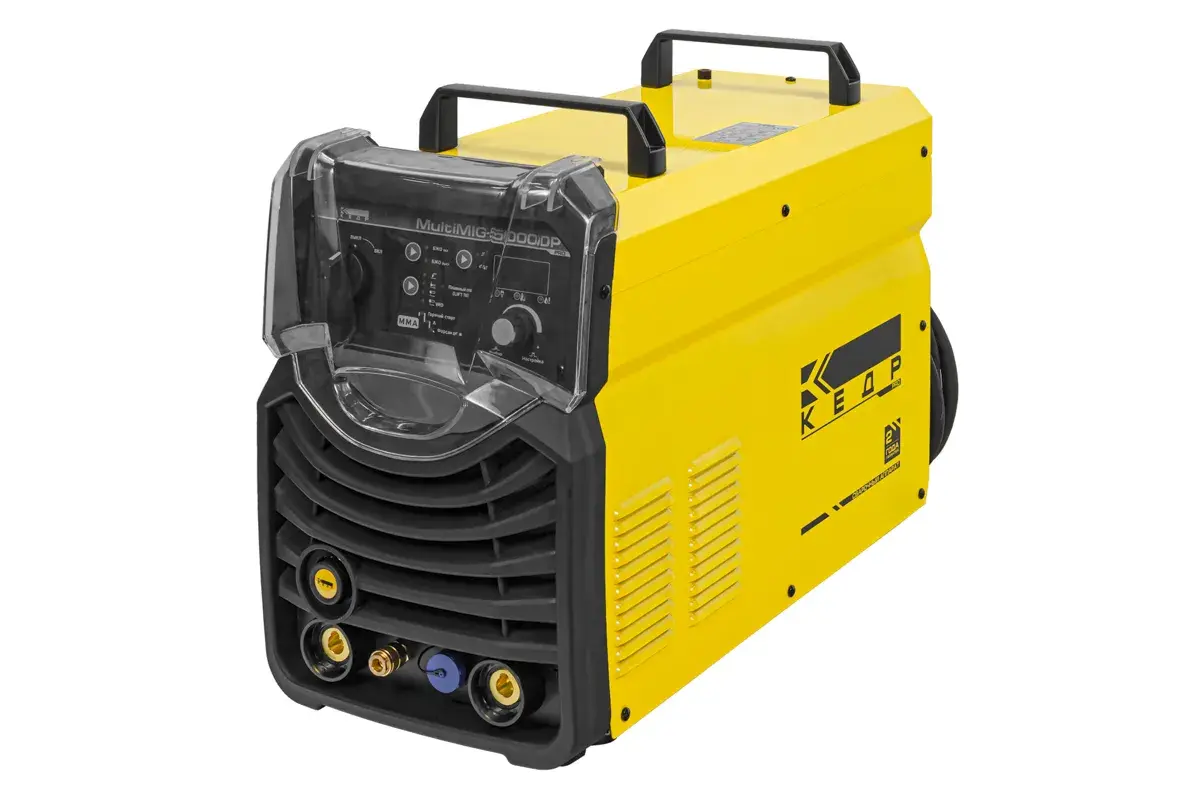 Сварочный инвертор КЕДР MultiMIG-5000DP- высокотехнологичный многофункциональный промышленный источник питания для MIG/MAG, MMA и TIG сварки. Аппарат имеет широкий пакет предустановленных программ, разработанных для различного типа проволоки, защитного газа и свариваемого металла, а также импульсные режимы сварки с использованием одинарного или двойного импульсов. Простое и интуитивно понятное управление, надёжность, высочайшая производительность и функционал позволяют рекомендовать данное оборудование для технологичных предприятий, работающих с изделиями из высоколегированной стали, алюминия, кремнистой бронзы и других материалов в промышленном цикле.