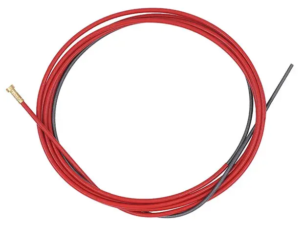 Канал направляющий (1,0–1,2) 3,5 м красный необходим в сварке типов MIG\MAG для подачи сварочной проволоки к соплу сварного пистолета. Подача происходит непосредственно от инвертора или от выносного элемента, подающего проволоку. Фиксация концов канала осуществляется в горелке и в инверторе.