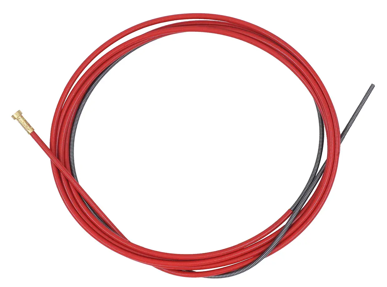 Канал направляющий (1,0–1,2) 4,4 м красный необходим в сварке типов MIG/MAG для подачи сварочной проволоки к соплу сварного пистолета. Подача происходит непосредственно от инвертора или от выносного элемента, подающего проволоку. Фиксация концов канала осуществляется в горелке и в инверторе.