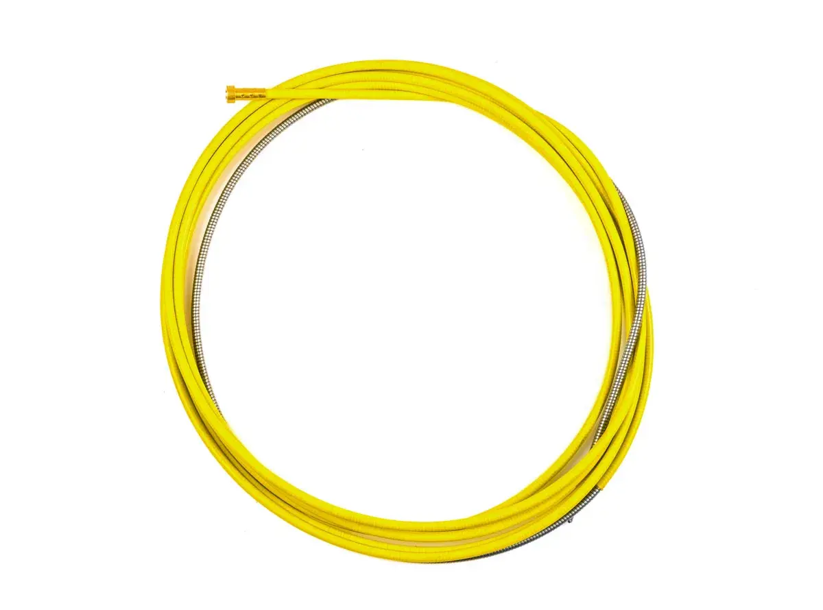 Канал направляющий (1,2–1,6) 4,4 м желтый необходим в сварке типов MIG\MAG для подачи сварочной проволоки к соплу сварного пистолета. Подача происходит непосредственно от инвертора или от выносного элемента, подающего проволоку. Фиксация концов канала осуществляется в горелке и в инверторе.
