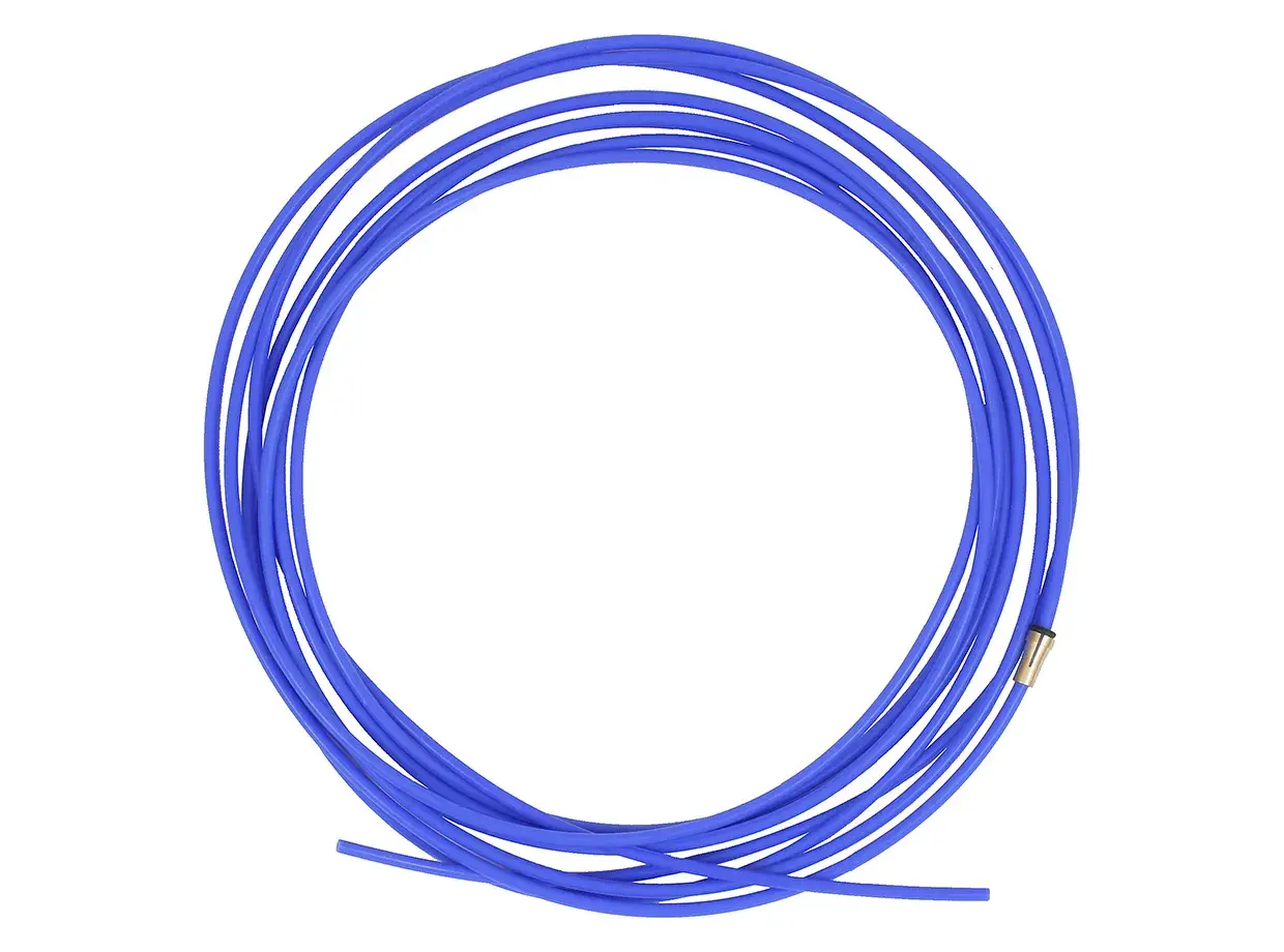 Канал направляющий тефлон (0,6–0,8) 3,5 м синий необходим в сварке типов MIG/MAG для подачи сварочной проволоки к соплу сварного пистолета. Подача происходит непосредственно от инвертора или от выносного элемента, подающего проволоку. Фиксация концов канала осуществляется в горелке и в инверторе.