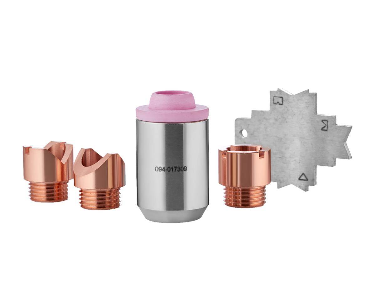 - Комплект состоит из специального сопла,установочного шаблона и трех насадок: насадки для стыковых и нахлесточных соединений, насадки для угловых и внутренних соединений, насадки для угловых внешних соединений.