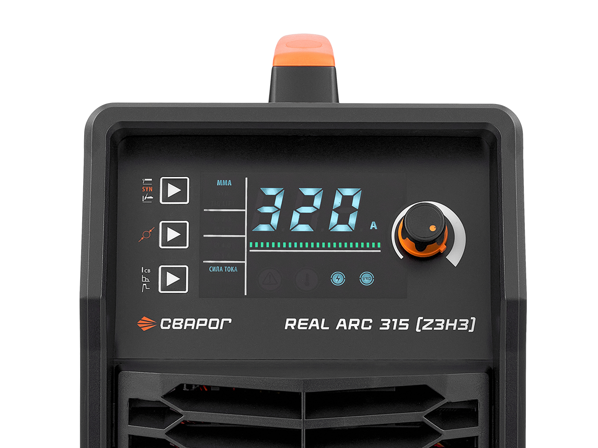 - Высокие предельные значения тока сварки, благодаря применению IGBT–модулей: предельный ток аппарата REAL ARC 315 составляет 320А