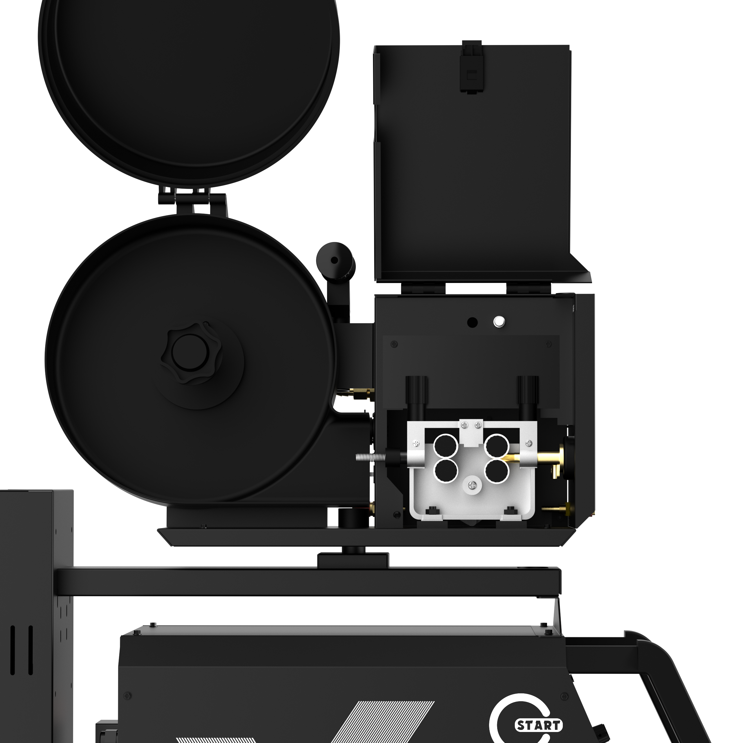 Сварочный полуавтомат START ALUWELD X500 PULSE оснащен отдельным выносным подающим механизмом, что обеспечивает дополнительное удобство и гибкость в работе. Благодаря 5-метровому кабелю управления, входящему в комплект, механизм можно выносить от основного блока, что особенно полезно при работе на больших производственных площадках