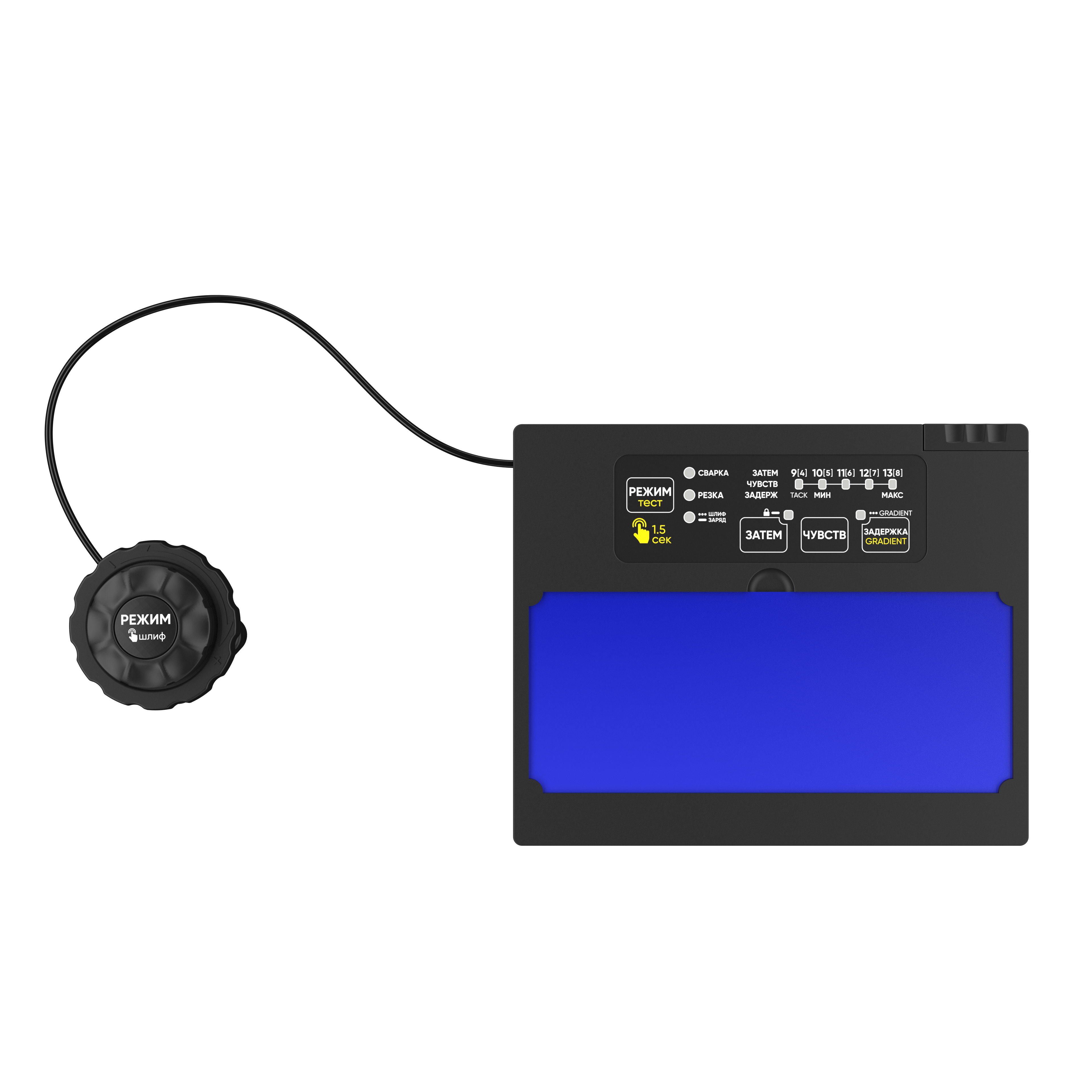 Расширенные настройки позволяют адаптировать маску под различные задачи — от сварки до зачистки. Цифровое управление обеспечивает точность настройки и стабильность работы светофильтра в различных условиях.