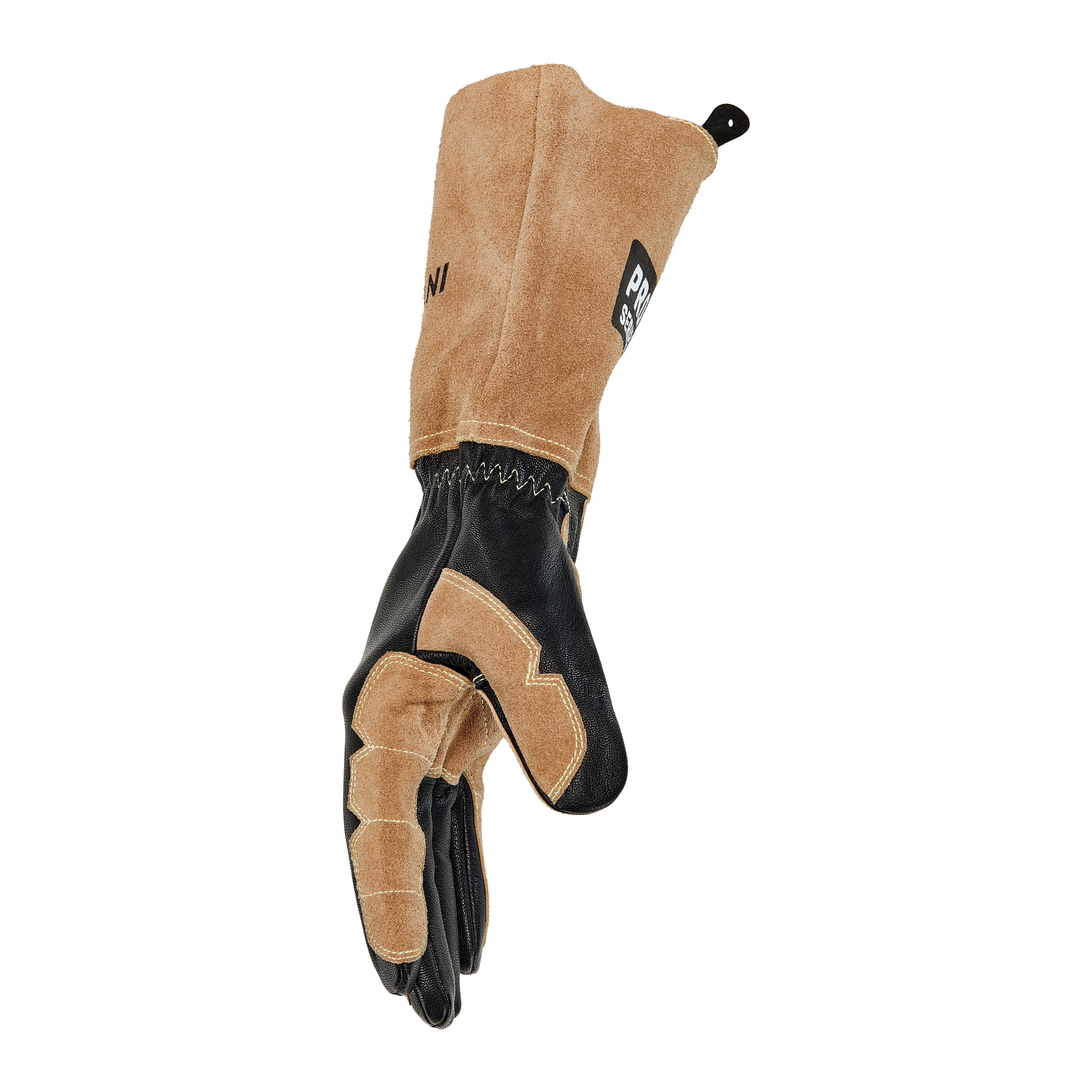 Основой краг служит комбинация спилка и натуральной кожи КРС. В отличие от козьей кожи, КРС обладает повышенной прочностью, сохраняя при этом достаточную мягкость для комфортной работы.