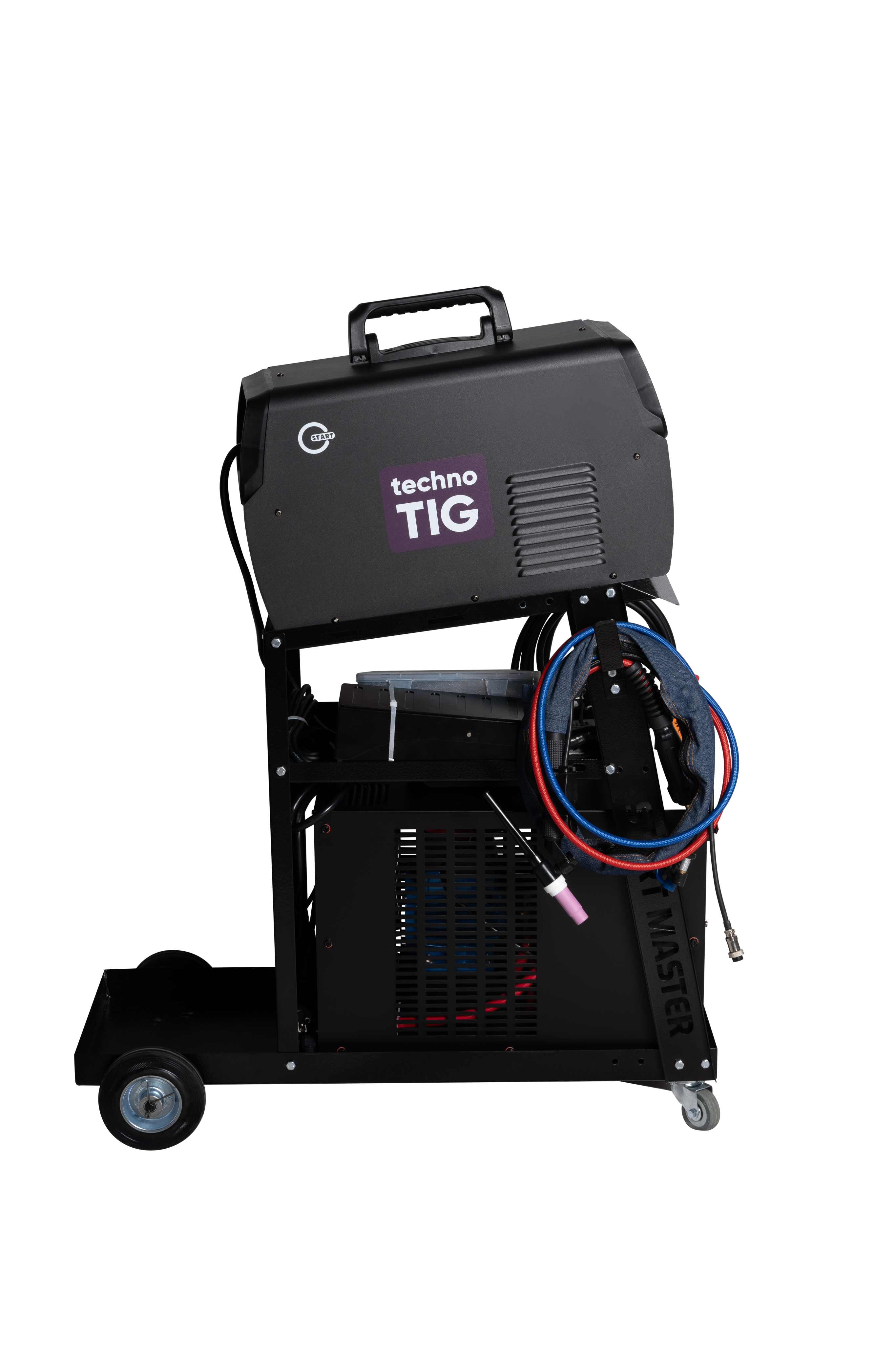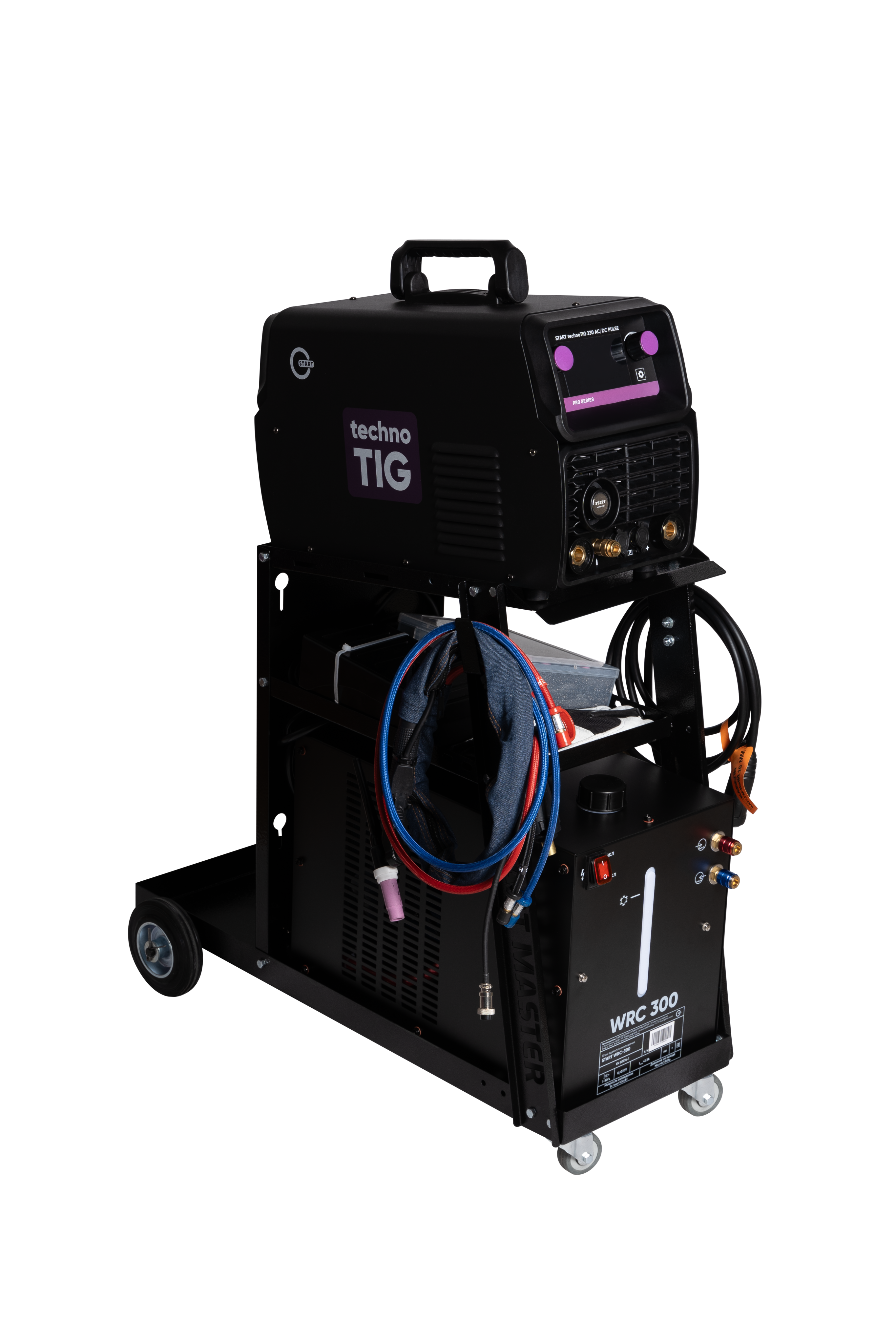 Просторные полки обеспечивают удобное хранение сварочных аксессуаров, инструментов и расходных материалов. Сварочная тележка обеспечивает удобное и компактное размещение полного набора оборудования и аксессуаров, включая: сварочный источник, блок водяного охлаждения, педаль управления сварочным током, сварочную горелку, кейс с расходными материалами, щиток сварщика а так же баллон с защитным газом.
