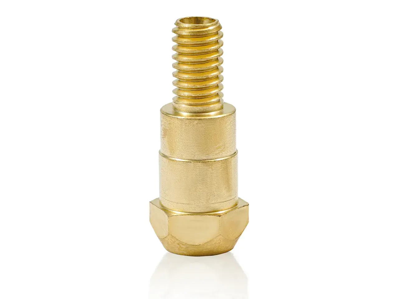 Вставка под наконечник M8 (Mig-24) - предназначена для монтажа контактного наконечника в горелку. Вставка отвечает за равномерное распределение защитного газа внутри сопла и токоподвод к наконечнику. Все вставки, как правило, выполнены из латуни, имеют симметрично расположенные отверстия по всей окружности. Вставки под наконечник отличаются в зависимости от модели горелки, имеют разные размеры и внешний вид.